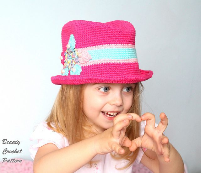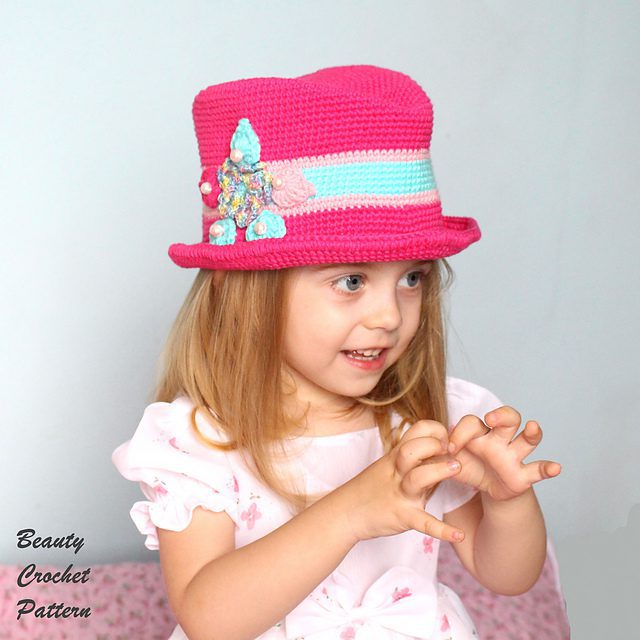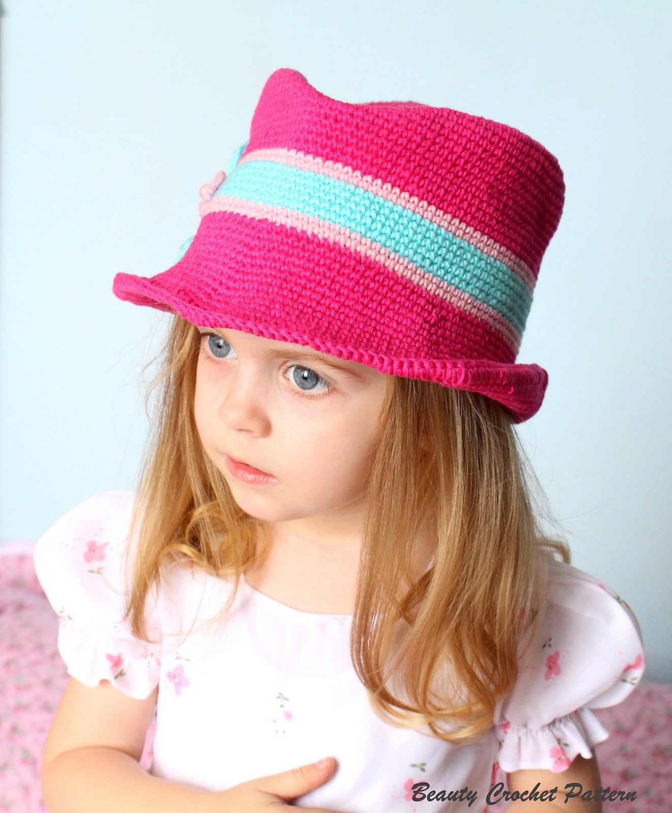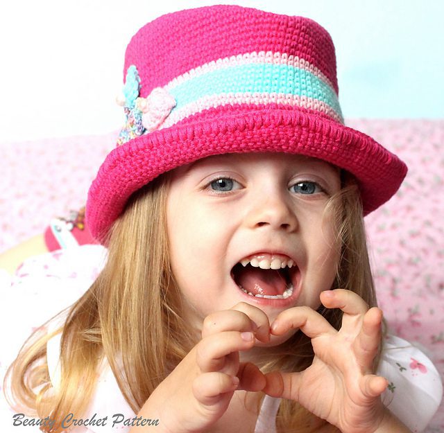 This beautiful stylish hat comes in 3 sizes: Toddler, Child (3-10 years), Teen-Adult
