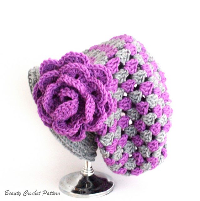 Hook size for the hat – 3 mm, for the visor – 2.5 mm, for flowers – 4 mm and 2.5 mm, for leaves – 3.5 mm.